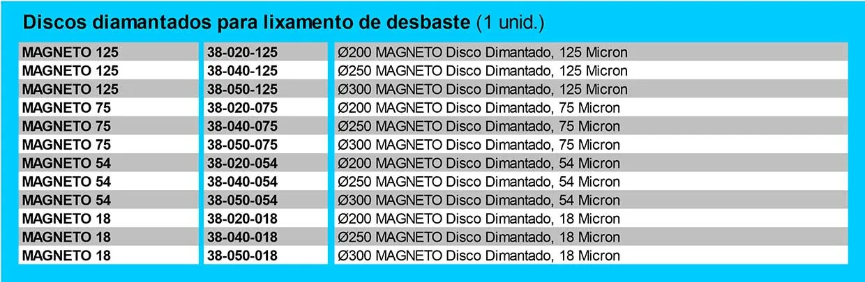 Linha de Consumíveis Para Desbastes de Amostras
